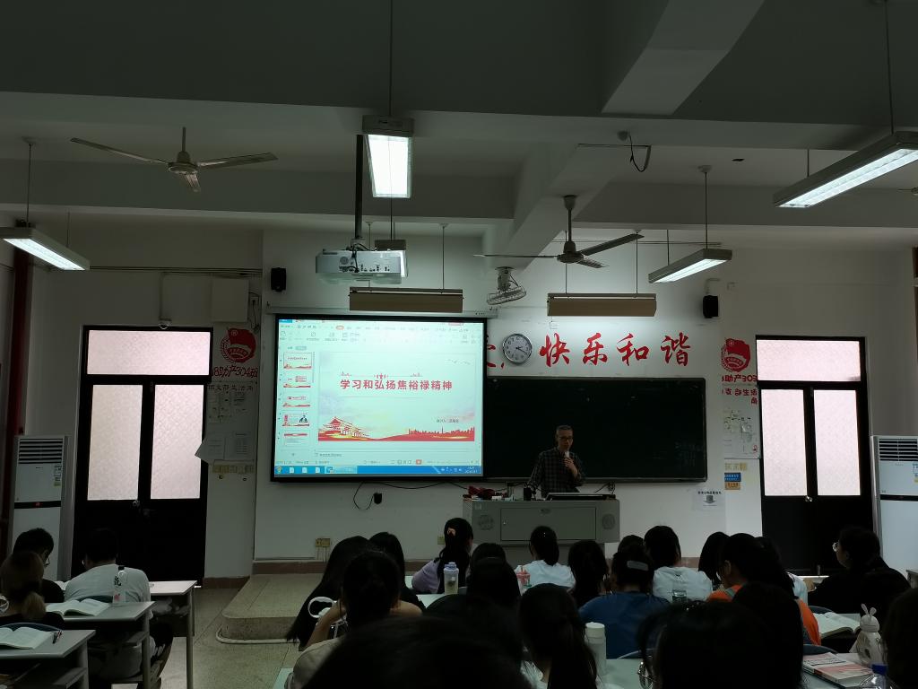 2021年5月17日下午,习近平新时代中国特色社会主义思想读书社宣讲团在胡济林老师的带领下,到教学楼210为20级健康管理302班举行“学习和弘扬焦裕禄精神”的专题宣讲。此次宣讲人是莫慧芸同学。
