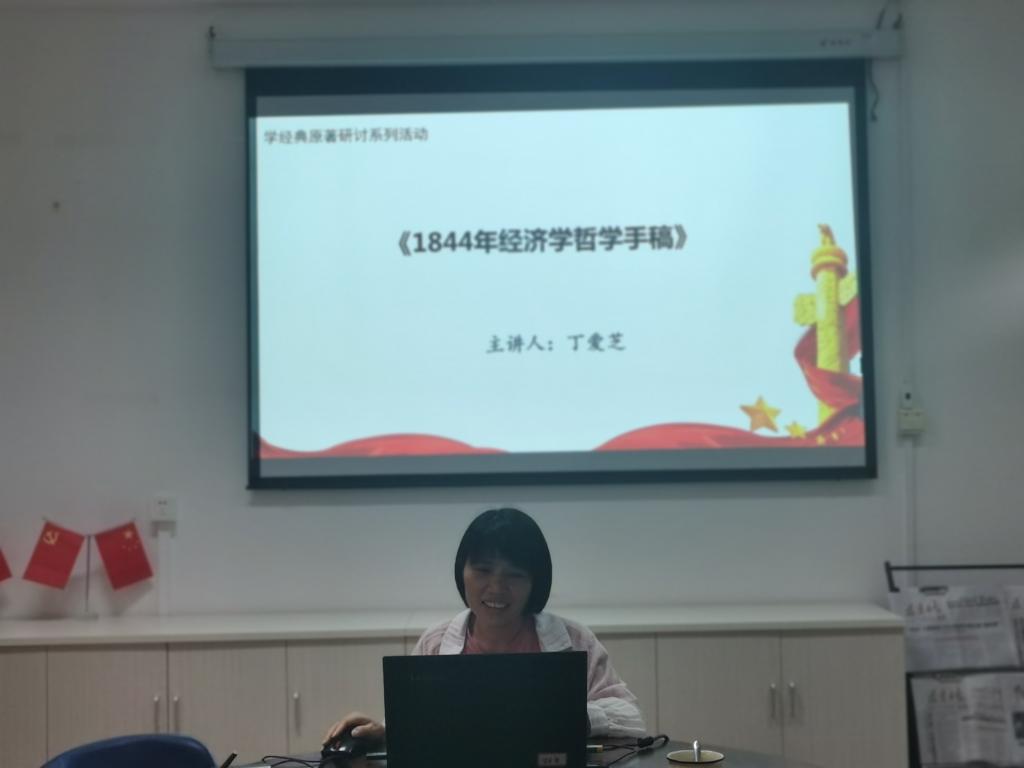 活动第二部分由丁爱芝老师主讲,研学内容为马克思的《1844年经济学哲学手稿》(以下简称《手稿》)。