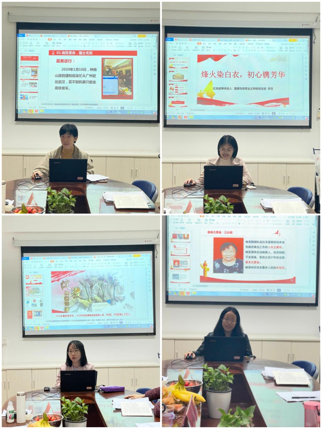 讲座后,刘新玲听取直属马克思主义学院党支部“追忆荣光党史 传承红医精神”的微党课汇报并予以悉心点评。她着重针对综合指向不够凝练、缺少主线等问题提出宝贵意见。她建议,微党课要注重顶层设计,凸显区域特色,使题目设计更加明晰。