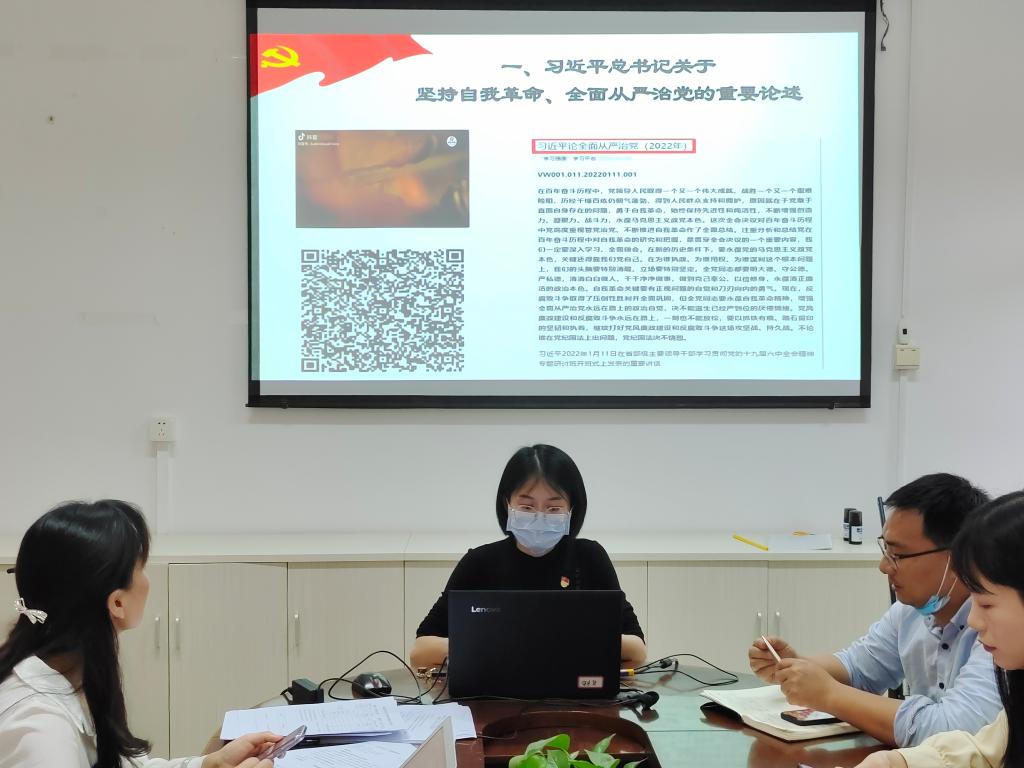 随后,罗芸同志分享了学习《习近平总书记关于坚持自我革命、全面从严治党的重要论述》的心得体会。她指出,自我革命不是空洞的口号,要体现在现实的、有旺盛生命力的各项具体行动中。我们要着力强化政治建设、思想建设、组织建设、作风建设、纪律建设;以学风建设为重点,持续促进作风和文风转变,发挥好决策支持的参谋助手作用;以提升支部的组织力为抓手,不断强化政治职能,规范组织生活,创新活动方式,将支部建设成宣传党的主张、贯彻党的决定、团结动员群众的坚强战斗堡垒。