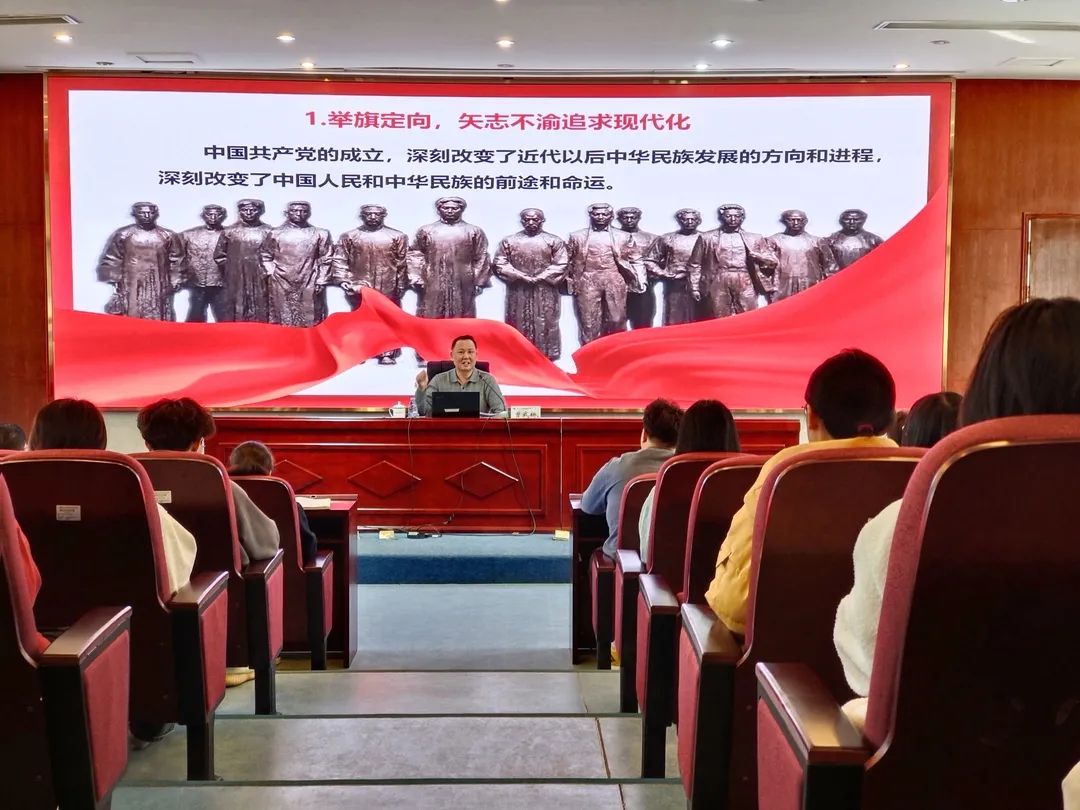 曾武祈从历史经验、制度优势、文明形态等维度出发,向党员们深刻解读了党的二十大明确提出并系统阐述的中国式现代化。他指出,中国式现代化是一个内涵丰富、影响深远的时代命题,是一项使命光荣、充满挑战的伟大事业。大道之行,壮阔无垠。生逢盛世,使命光荣。教师党员应知时势、明任务,笃定信心跟党走,在全面建设社会主义现代化国家新征程新赛道上奋楫扬帆,赓续前行。