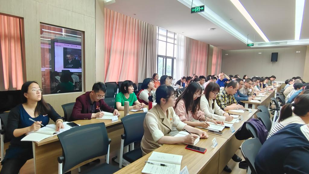 曾武祈以系统研读《深入学习习近平关于教育的重要论述》一书的体会感悟为引,从“追寻习近平总书记校园足迹,感悟真理实践伟力”“深学悟透,深入把握理论逻辑和科学内涵”“学做结合,奋力谱写职教改革发展新篇章”三个方面展开论述,为全体教师党员带来一场深刻的党性教育和精神洗礼。