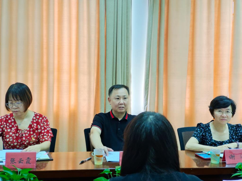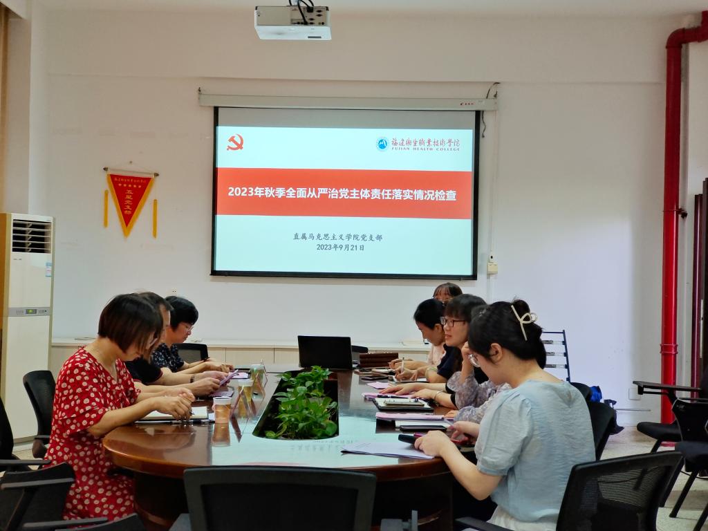 2023年9月21日,直属马克思主义学院党支部在行政楼107迎接校2023年秋季全面从严治党主体责任落实情况检查工作。校党委主题教育协调推进一组组长、校党委书记曾武祈,协调推进一组组员、组织统战部部长谢涛,协调推进一组组员、组织统战部干部科科长张云霞出席会议,直属马院党支部书记熊美兰及其他支部委员参加会议。