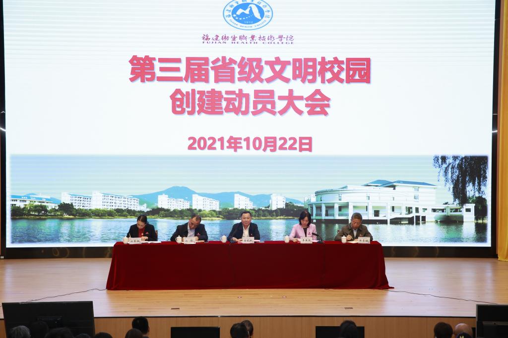 10月22日上午,开云在学术报告厅召开第三届省级文明校园创建动员大会。学校领导班子成员、副科级及以上干部、各部门评建工作联络员、全体教研室主任、实训中心主任及副主任和专兼职辅导员共190余人参加会议。会议由党委副书记李美华主持。