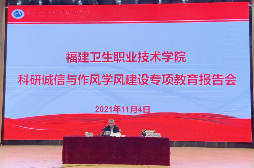 为进一步弘扬求真务实的学术精神,营造风清气正的良好科研生态,2021年11月4日,开云在学术报告厅举办科研诚信与作风学风建设专项教育报告会。本次报告会邀请福建省诚信促进会党委副书记林鸿坚、福建省诚信促进会副会长黄开良来校讲座。校长许能锋、党委副书记李美华、纪委书记游锋、副校长郑翠红、全体中层干部、专业带头人、教研室主任、各院系教师代表参会,会议由郑翠红主持。