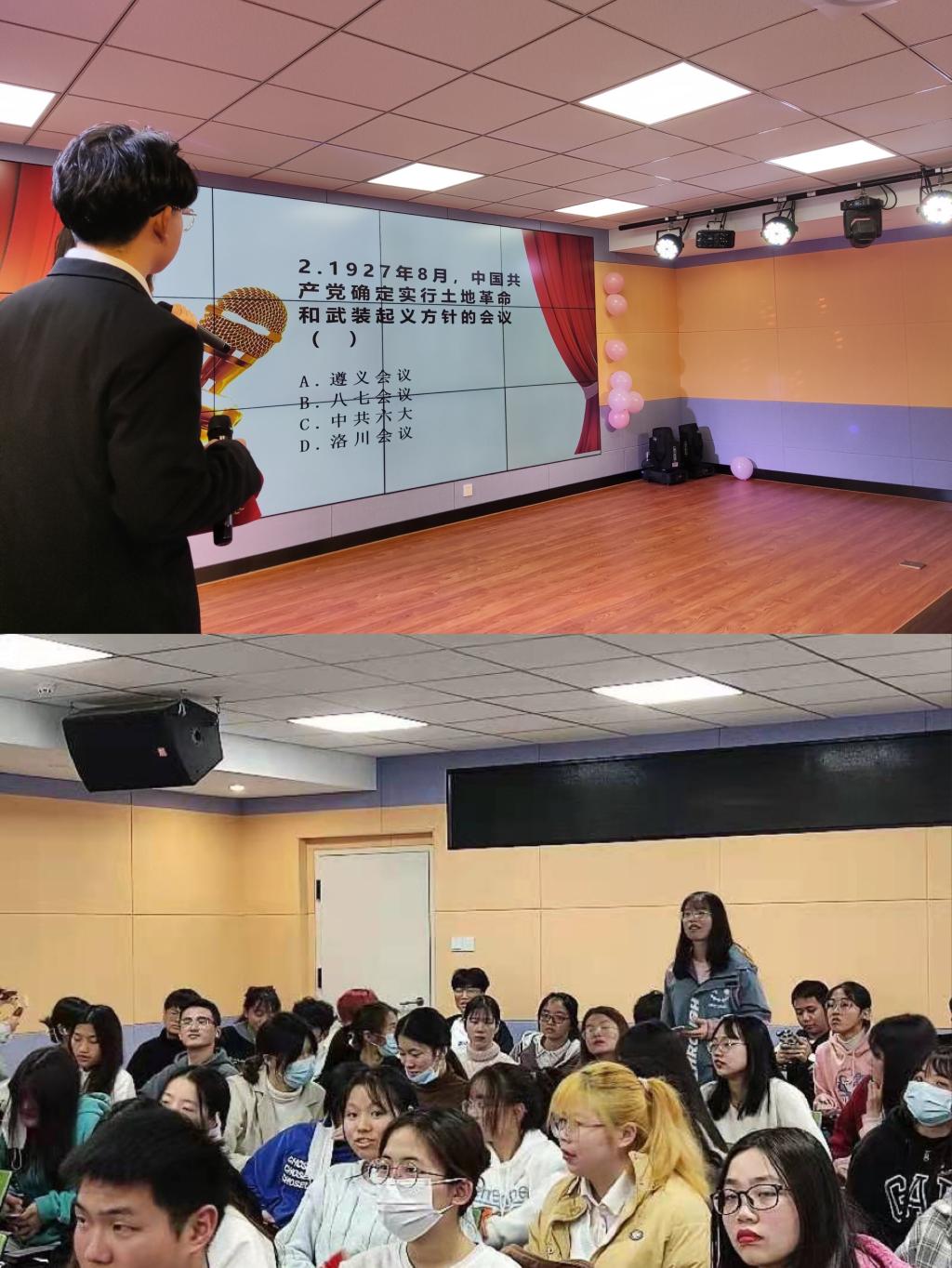穿插在比赛间隙的党史答题环节将观众们的热情进一步点燃,让同学们在感受美、欣赏美的同时收获党史知识、陶冶情操。