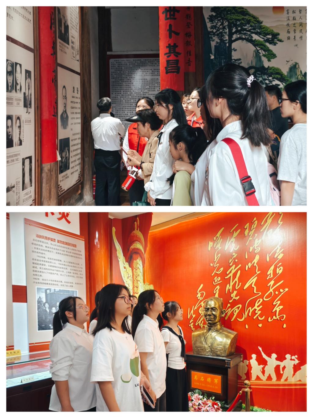 吴石将军作为隐蔽战线的杰出代表,其忠贞不屈的革命气节、矢志不渝的理想信念和无私奉献的崇高精神,是福建红色文化宝库中的珍贵财富。在讲解员的引导下,师生一行循着历史的足迹缓缓前行。大家在吴石将军雕塑前肃立默哀,表达深切缅怀与崇高敬意;随后在记录着将军生平的点滴图文前驻足凝视,凝神端详每一张珍贵照片与文献资料,沉浸式地感悟吴石将军波澜壮阔的一生,深刻体味其坚如磐石的忠诚信仰与深沉的家国情怀。
