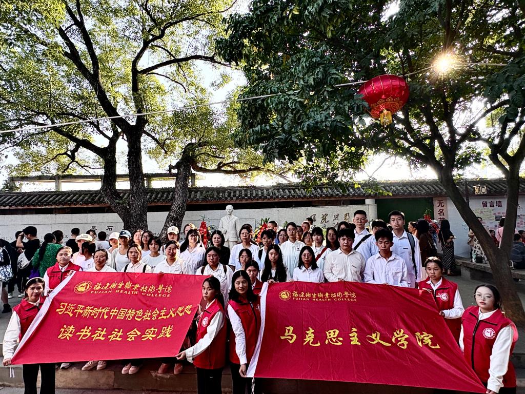为深入学习贯彻党的二十届四中全会精神,认真落实习近平总书记关于传承红色基因的重要论述,传承赓续中华文脉,充分发挥福建党史事件多、红色资源多、革命先辈多的独特优势,11月8日,习近平新时代中国特色社会主义思想读书社(以下简称“读书社”)赴福州市仓山区螺洲镇吴石将军故居,开展“赓续红色基因 铸就忠诚医魂”主题实地研学暨红色宣讲活动。社团指导老师熊美兰、罗芸与社团学生代表共46人参加。活动通过故居寻迹、红色宣讲、互动共享等环节,打造了一堂沉浸式、互动式的“行走的思政大课”,引导青年学生深刻理解中国道路的历史必然、红色文化内涵及其当代价值。