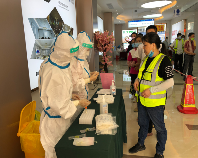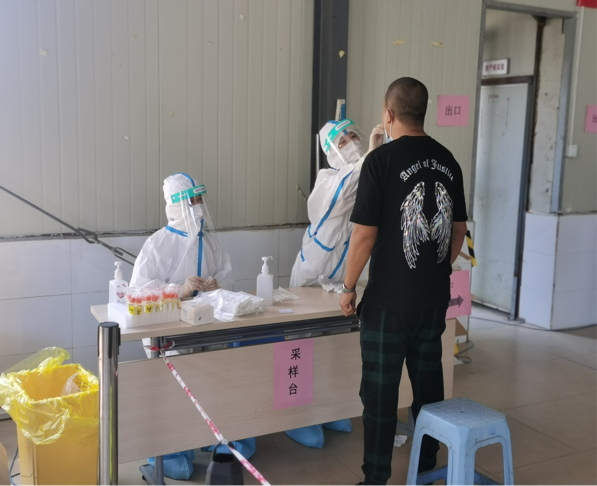 到达实战演练场地后,大家迅速穿好防护服,分工合作,有条不紊地开始核酸检测。尽管天气炎热,但是队员们还是以坚强的意志、规范的操作圆满完成核酸检测任务,为构筑疫情防线贡献了自己的力量。