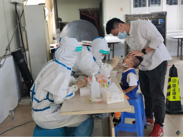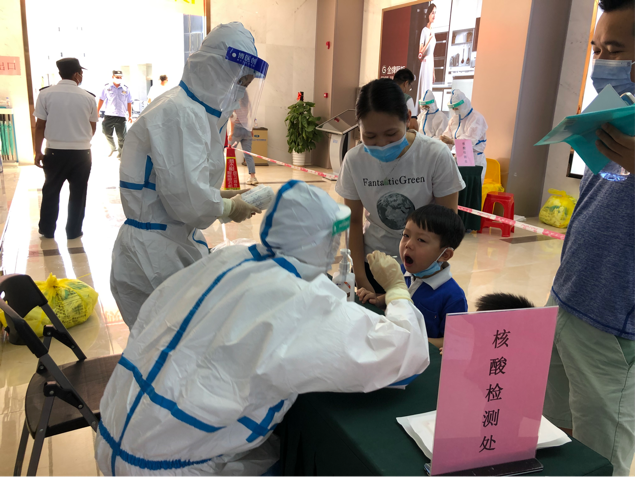 在疫情面前不退缩、在困难面前不低头,这是我们中华儿女的责任,更是义务。穿上防护服,密不透风,不一会全身湿透,结束时脱下手套里头全是汗水。虽然天气炎热,参与检测的群众非常配合仍然积极响应号召,主动出门到指定地点做核酸检测。大家的配合,使得核酸采样快速而又顺利。这次志愿活动时间不长,于我却是一次难忘的经历,让我更切实感受到责任感与使命感,让我更坚定自己未来想成为什么样的人。
