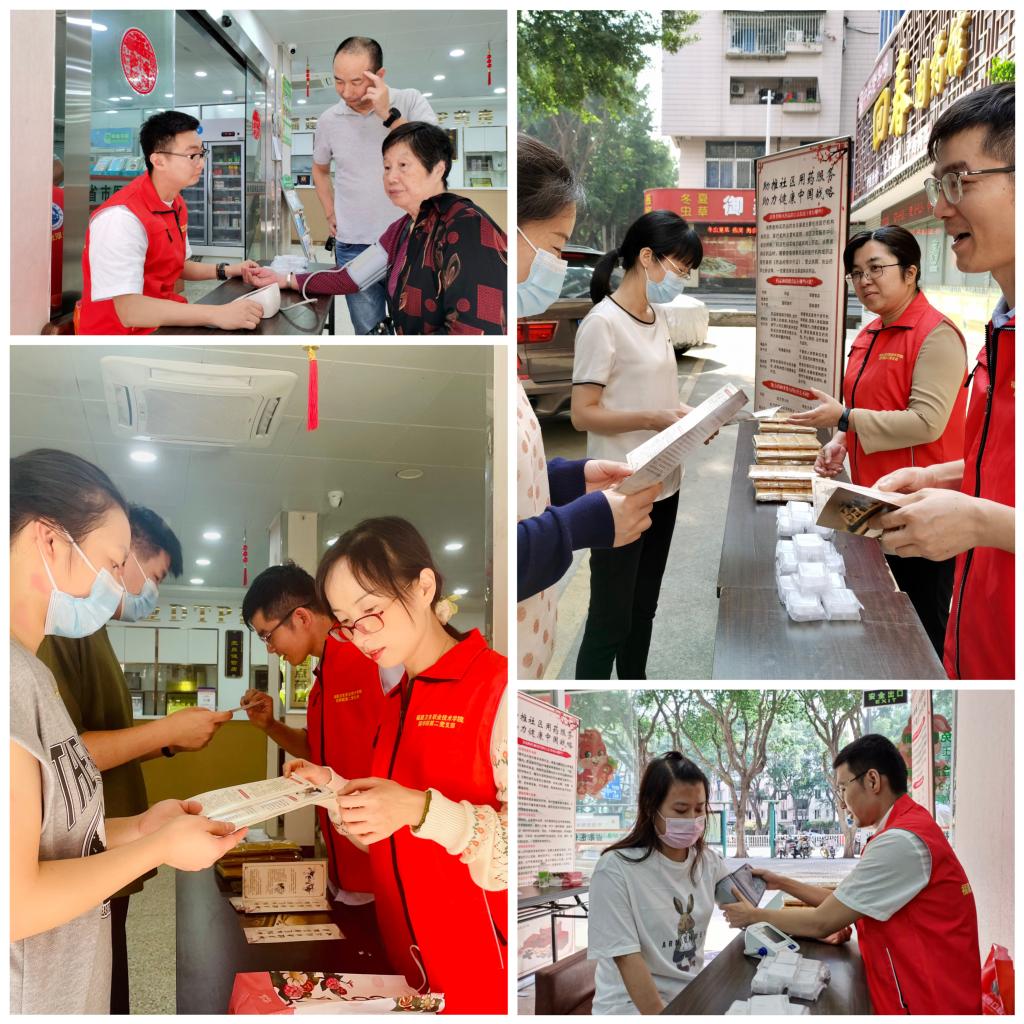 随后,教师们来到回春国医馆,为患者和社区居民进行现场义诊和用药指导。教师们热情地为老年人测量血压,耐心细致地进行用药常识讲解,体现出教师们服务社会、服务群众的情怀。