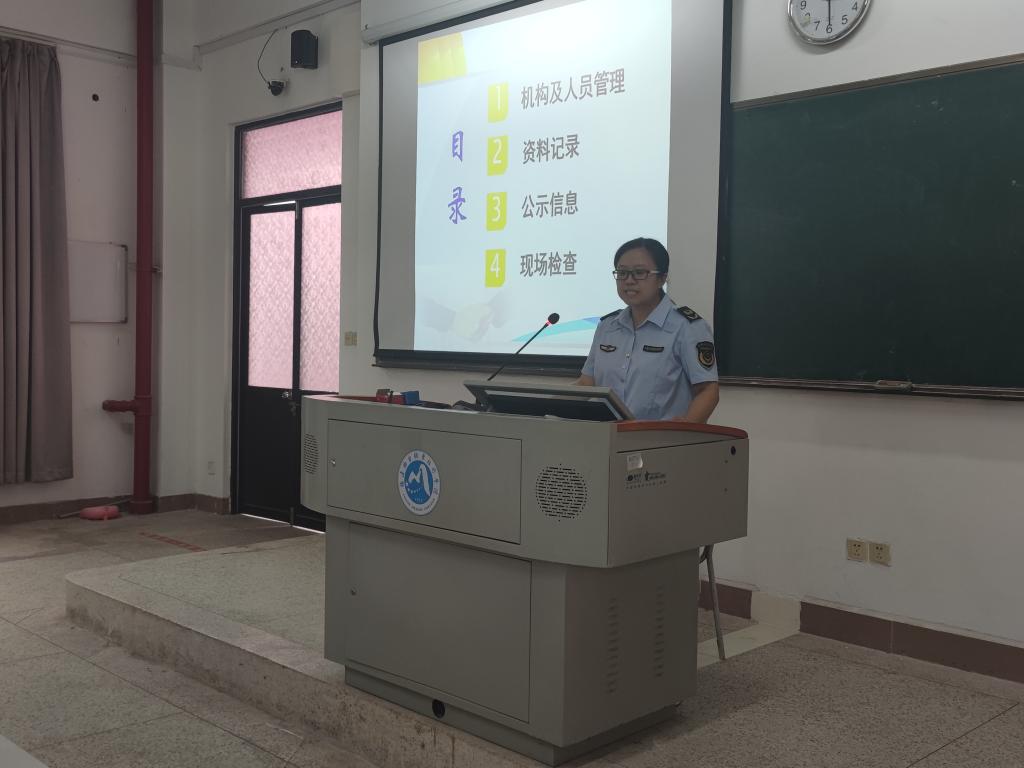本次培训邀请闽侯县荆溪镇市场监督管理所副所长李霞授课。培训内容紧扣国家食品安全示范城市创建工作主线,结合餐饮企业生产经营典型案例,从证件信息公示、食品安全管理人员配备、人员健康管理、环境场所要求、设施设备配置、原料采购贮存、加工操作规范、有害生物防治、餐具清洗消毒、厨余垃圾处置、制止餐饮浪费等食品生产经营各环节全方面进行深入浅出的讲解,并指导各餐饮企业科学制定食品安全风险管控清单、完善食品安全监管职责体系、提高管理质效。