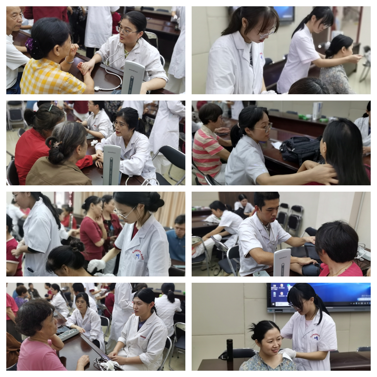 医学院教师第三党支部的师生们还为学员们提供了艾灸刮痧、保健推拿、血压防控、把脉问诊等一系列义诊服务。这些贴心的服务深受学员们的喜爱,现场人头攒动,络绎不绝。