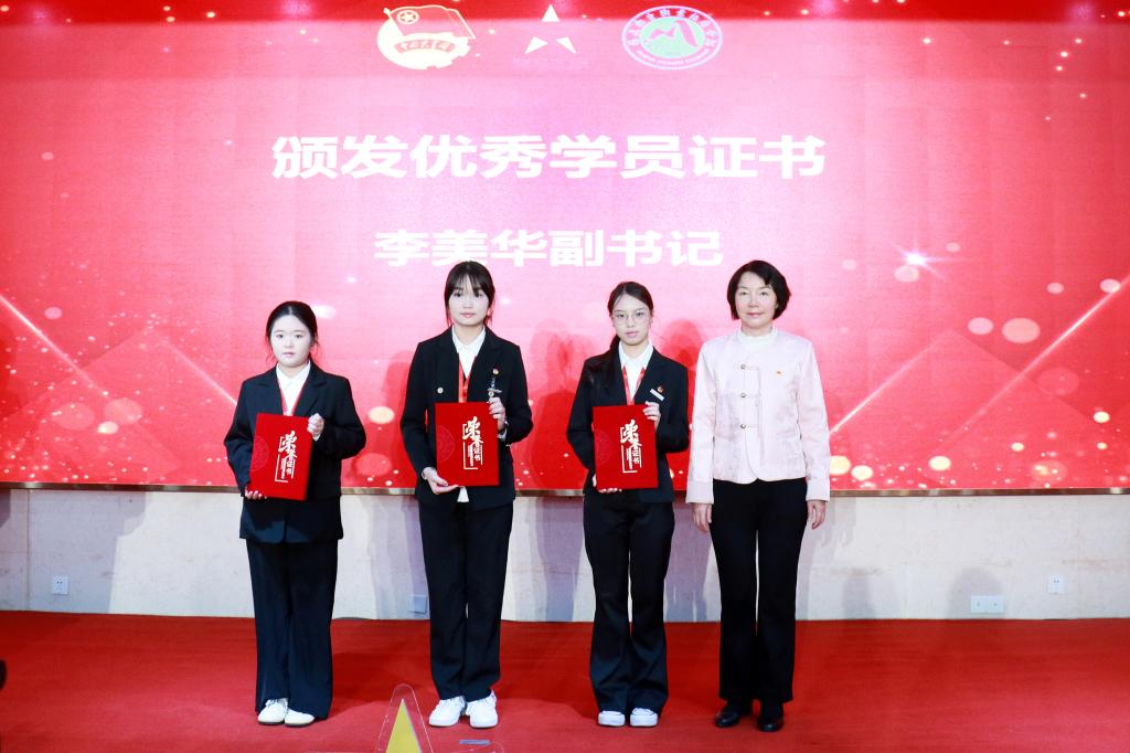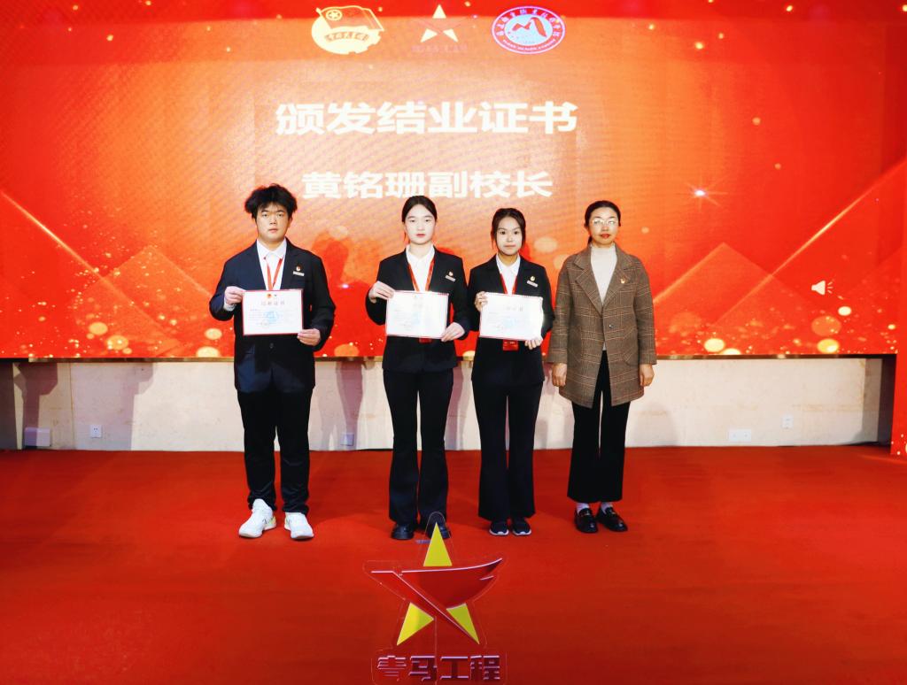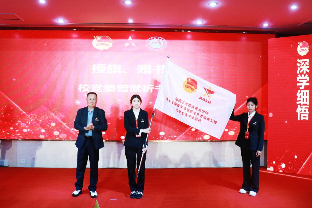 仪式上,曾武祈为本期培训班授旗并赠送理论学习读物,标志着新一期“青马”征程正式启航。李美华、黄铭珊分别为第十二期“青马工程”优秀学员颁发荣誉证书和结业证书。