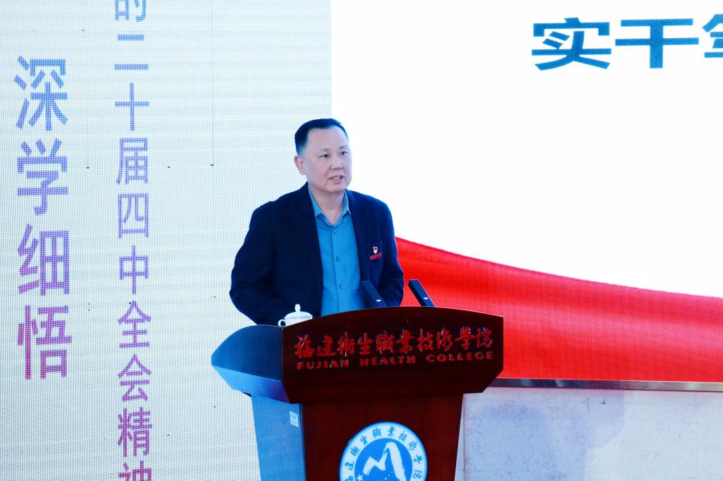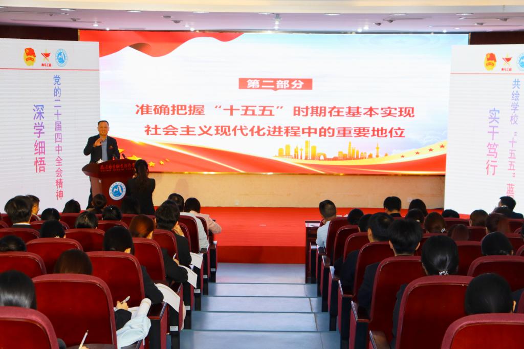 开班仪式结束后,曾武祈以《深学细悟党的二十届四中全会精神 实干笃行共绘学校“十五五”蓝图》为题,为全体学员讲授了“开班第一课”。他深入解读了党的二十届四中全会精神,回顾总结了学校第二届党委的工作成就,并寄语全体“青马”学员:新程已启,战鼓催征。希望同学们以永不懈怠的精神状态和一往无前的奋斗姿态,融入时代,继往开来,为早日将学校建成职教本色鲜明、健康底色深厚、服务特色彰显的高水平职业院校,为谱写教育强国、健康中国的崭新篇章贡献青春力量!