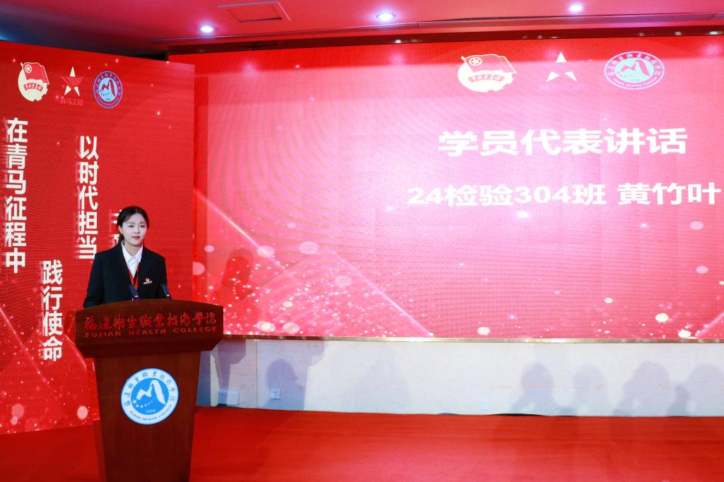 福建省第十八期青年马克思主义者培养工程培训班“青马工程”学员黄竹叶同学作为新一期青马班班长,现场分享了她在“青马”之旅中的学习感悟与成长收获,并表示将带领全体学员把理论学习的成果转化为实干笃行的强大动力。