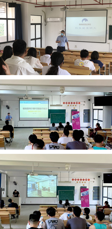 福建健明医药集团人力资源总监廖俊杰等8位企业负责人分别从经营概况、公司愿景、人才规划、企业文化、营业绩效、岗位要求、职业发展空间等多方面作了精彩的企业专场宣讲会,并对同学们的疑问进行了耐心详细的解答。