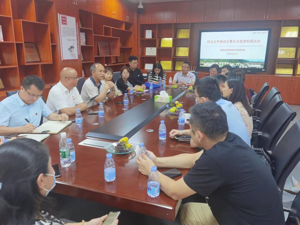6月29日下午,医学院邀请福建健明医药集团、福州养怡永乐健康管理有限公司、福建晶特尔美可普医疗集团、福州市同福医口腔连锁、璞元养生馆、海狸家口腔公司、福州玖玖口腔、博美齿科等八家企业入校开展专场招聘会暨企业进校园活动。校长许能锋、医学院党总支书记邱滚忠、医学院副院长邓元荣以及专业带头人、专业教师热情接待了企业一行。