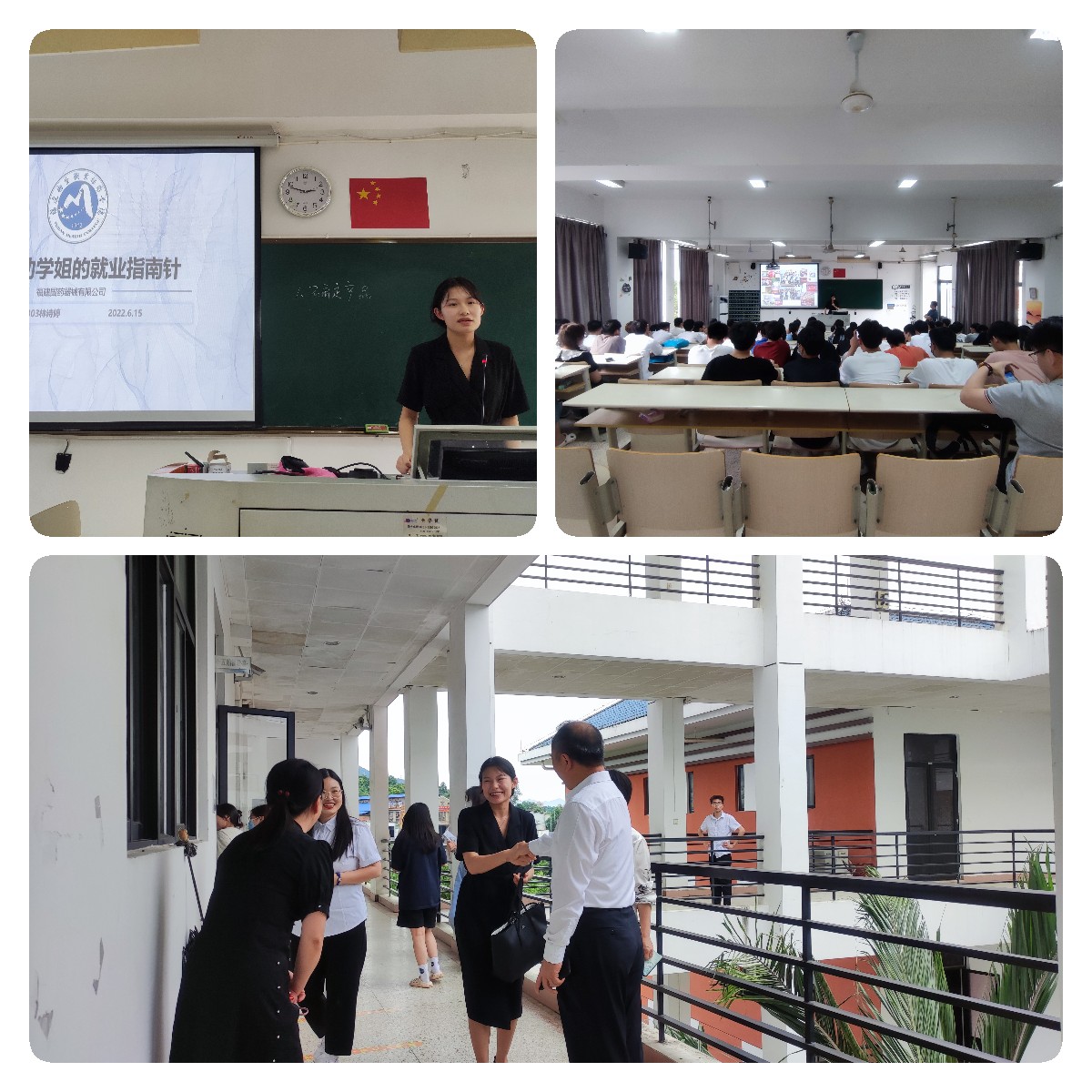 福建国药器械有限公司本次招聘代表是公司副董事长助理、开云医学影像技术专业毕业生林诗婷。应医学技术系邀请,林诗婷不仅介绍了公司情况和招聘岗位需求,还分享交流了自身在校的学习、实习、求职感悟及职场工作经验,为学弟学妹们送上一份诚意满满的“就业指南针”。许能锋同林诗婷亲切交流,欢迎优秀校友返校招聘,为学弟学妹引路职场,同时表示希望更多的校友们能积极牵线搭建就业平台,助力母校就业工作。
