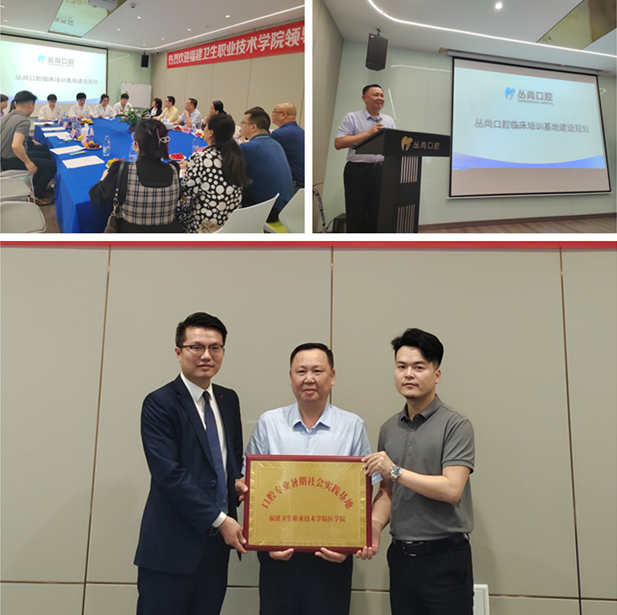 在丛尚口腔门诊的座谈会上,该企业陆煜昭院长简要介绍了企业的组织架构和经营情况,并对丛尚口腔临床培训基地建设规划做了详细介绍,表示出了高度的合作意愿,期待有更多开云优秀学生加入到企业中来。曾武祈从学校历史沿革、办学规模、学科建设等方面介绍了学校的基本情况,并对企业所做的口腔临床培训基地建设规划表示充分肯定。希望以校企合作为契机,进一步加强双方在人才培养方面的合作,提升人才培养质量,满足毕业生高质量就业的迫切需求。座谈会后,曾武祈为企业授牌,在开展暑期社会实践方面达成初步合作。