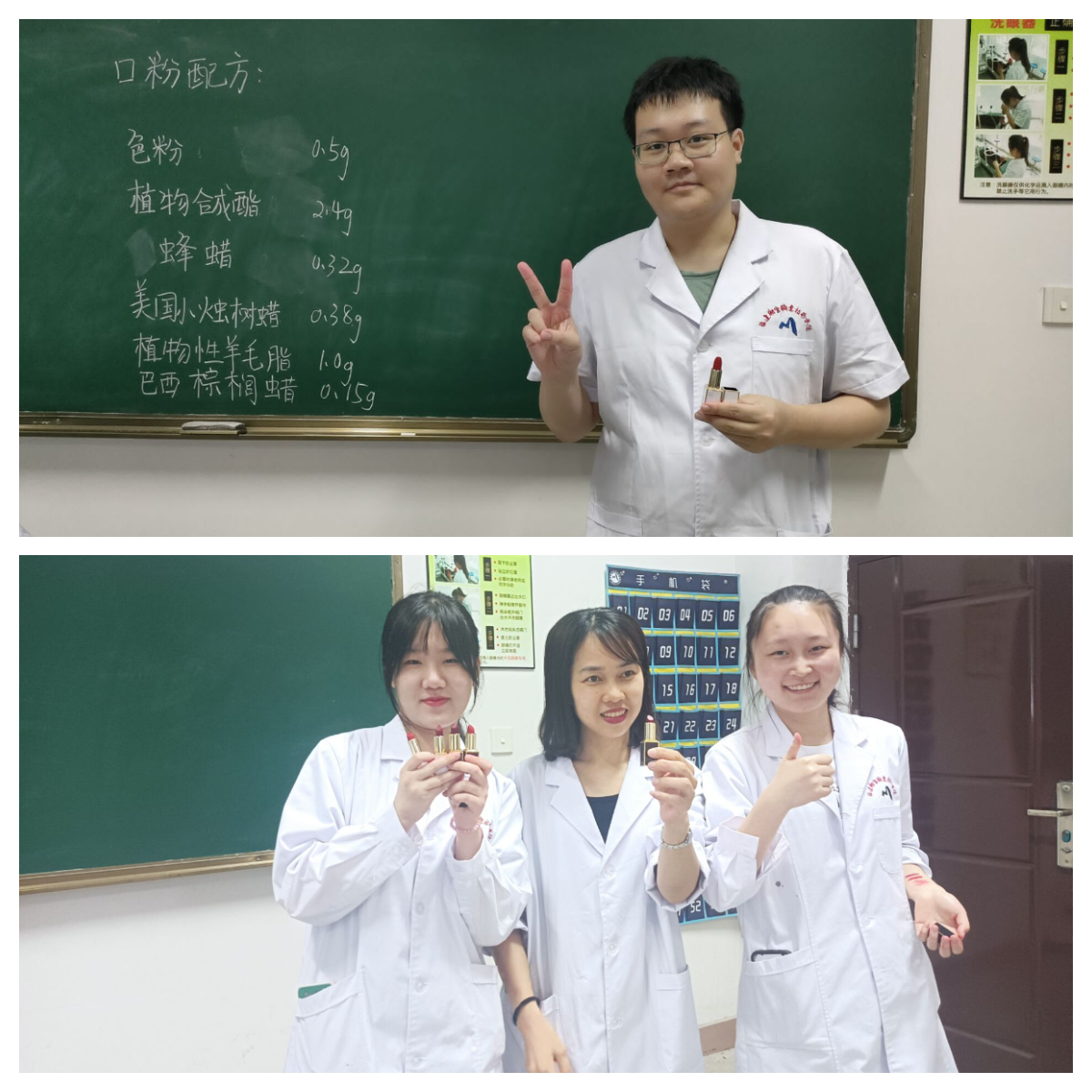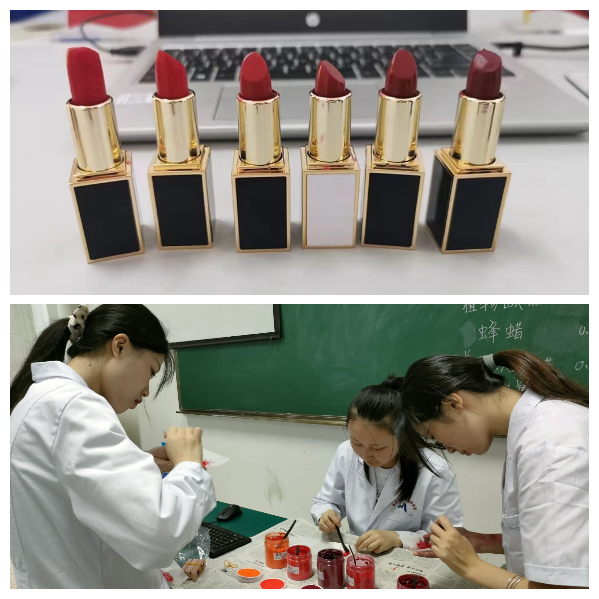 活动中,支部党员、药剂教研室主任张丽华结合专业特点,为学生介绍了制作口红所需的各种材料,以及口红的制作步骤。听完讲解,学生们跃跃欲试,迫不及待地将理论投入实践中,现场气氛活跃。经过老师的悉心指导和学生的细致操作,一支支各种色号的专属定制口红“新鲜出炉”。