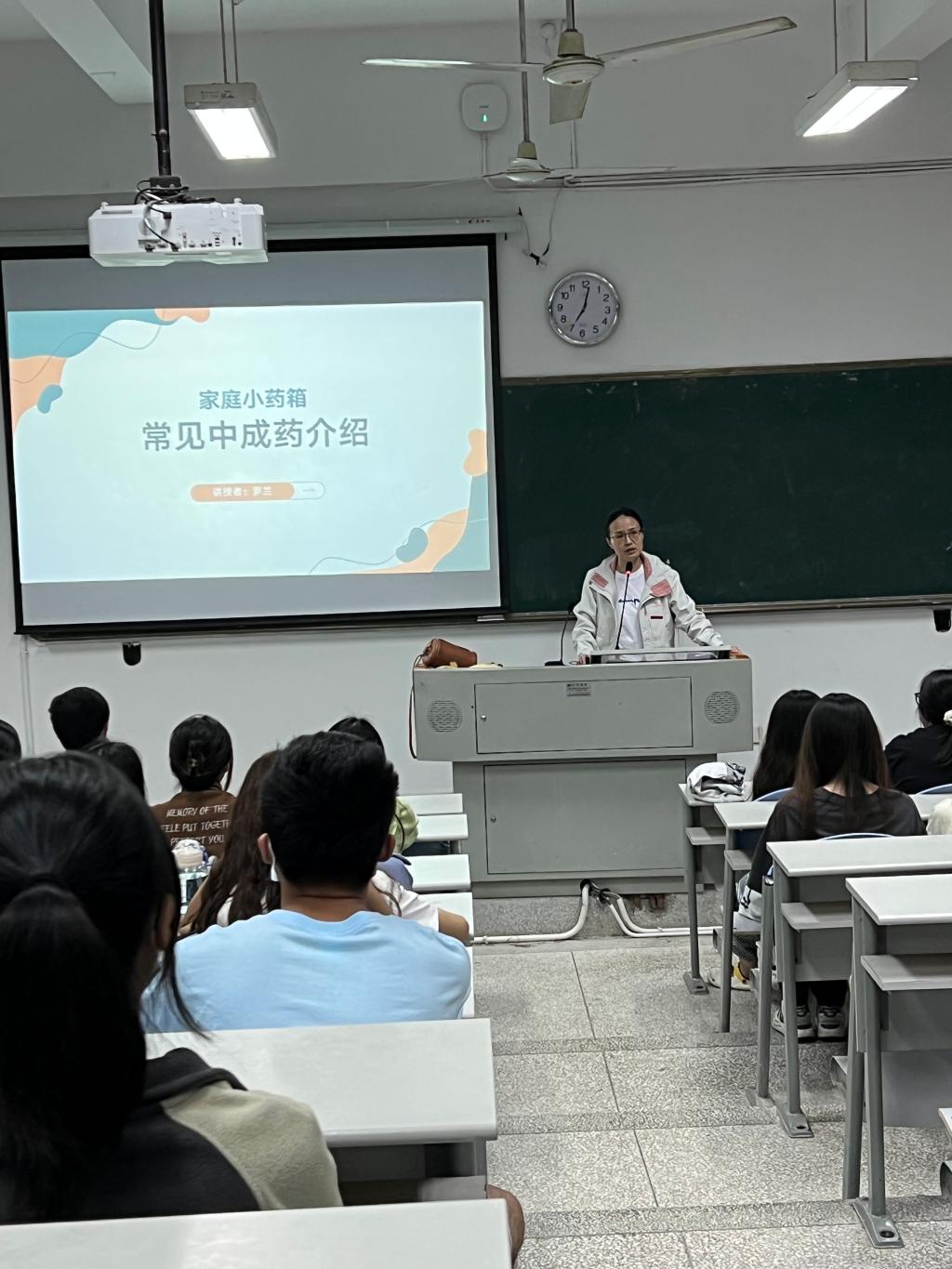 家庭小药箱是现代家庭中居家必备的生活用品之一,为弘扬中药传统文化,加强广大学生的健康意识,药学院第一党支部书记、中药学专业带头人罗兰举办题为《家庭小药箱——常见中成药介绍》的讲座,从中医辨证施治的角度,给在座的学生讲解了针对感冒、咳嗽的常用中成药,帮助学生更好地应对常见疾病,进一步了解将来从事的专业岗位。