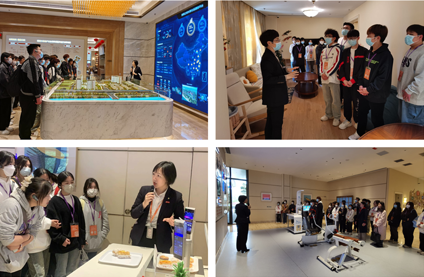 在泰康之家人力资源部的热情接待下,开云师生参观了泰康养老机构体验馆,深入了解泰康之家的养老观念、医养融合、科技养老以及新养老生活的七大需求满足方式等。
