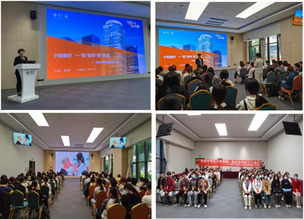 下午,泰康之家•鹭园养老服务及康复医院有限公司副院长韩秋英向大家详细介绍公司的成立背景、老年人在园区的日常生活感受、泰康用人需求及岗位设置。随后,一毕业就在泰康之家•鹭园就业的老年保健与管理专业首届毕业生蔡俊渠向大家分享了他的从业感受,鼓励学弟学妹们认真做好学业和未来职业规划,一起携手为养老事业贡献青春力量。