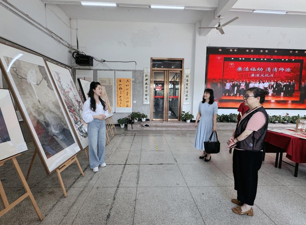 福建幼儿师范高等专科学校党委委员、纪委书记谢翠红代表学校对林玲一行表示热烈欢迎。随后,双方围绕监督执纪工作开展、廉洁文化融入校园建设、纪检干部队伍建设等方面进行交流与探讨。在谢翠红的陪同下,林玲一行实地参观了福建幼儿师范高等专科学校“师源廉韵”主题艺术联展等廉洁文化品牌建设成果。
