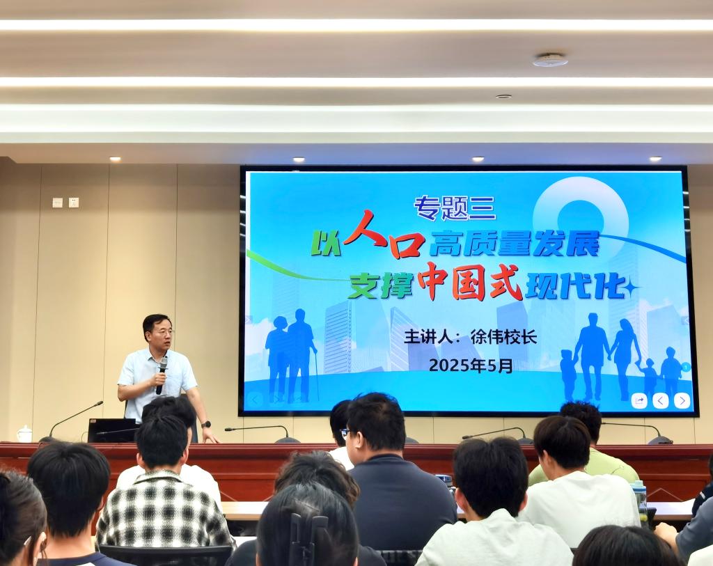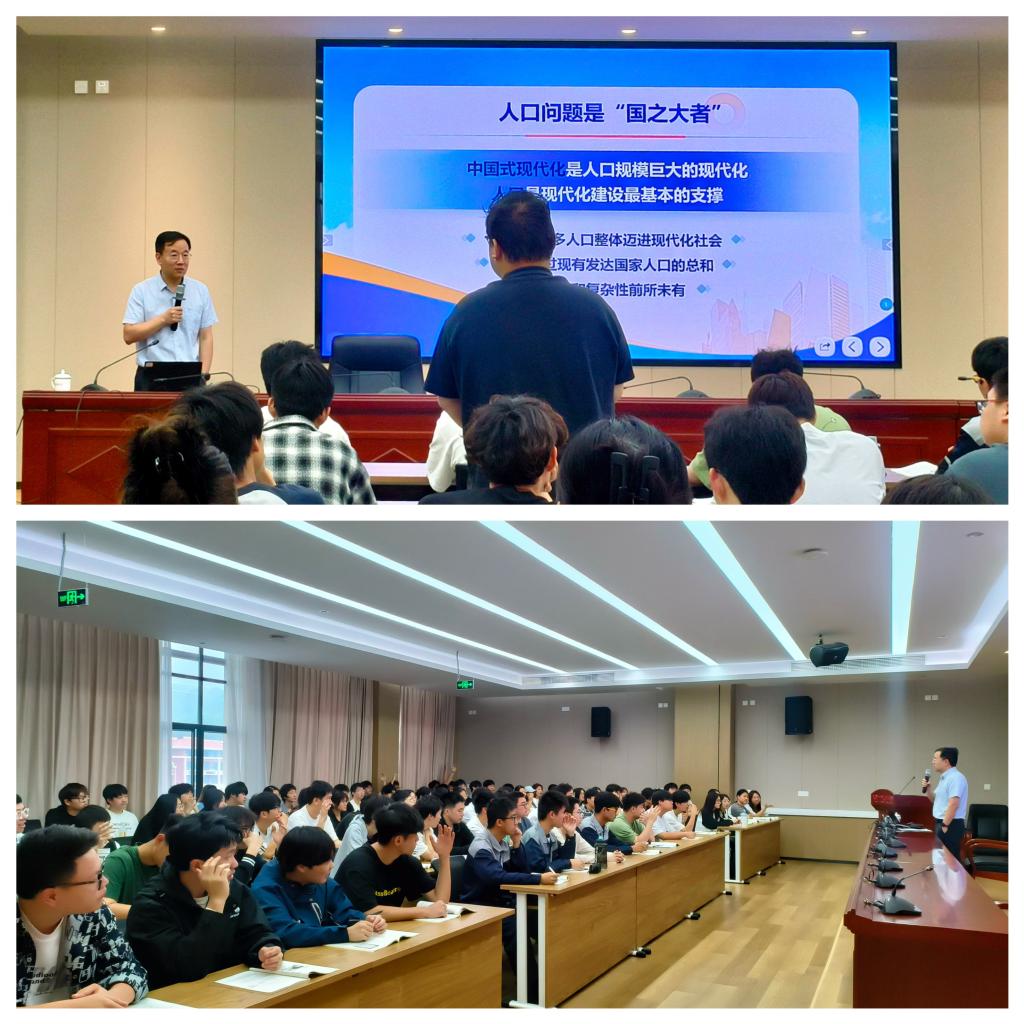 中国式现代化是人口规模巨大的现代化,人口是现代化建设最基本的支撑。徐伟从“人口发展面临新形势、人口问题全面辨证看、推进人口高质量发展”三个方面深入分析了我国 14 亿多人口整体迈进现代化社会面临的人口压力和人口结构转变挑战。授课中,徐伟以生动的案例、详实的数据、深刻的对比,有效调动同学们参与课堂的积极性,引导同学们全面、客观、辩证地看待人口问题,树立正确的人口观,积极传播人口发展的正能量。他指出,高校肩负全面提高人口综合素质的重大使命,学校要不断深化教育教学改革,提高人才培养质量,加强科技创新和社会服务,为人口高质量发展提供强大的智力支持和人才保障。同时,要加强高校思想政治工作,引导学生将个人发展与国家人口发展战略相结合,树立为国家现代化建设贡献力量的远大理想。