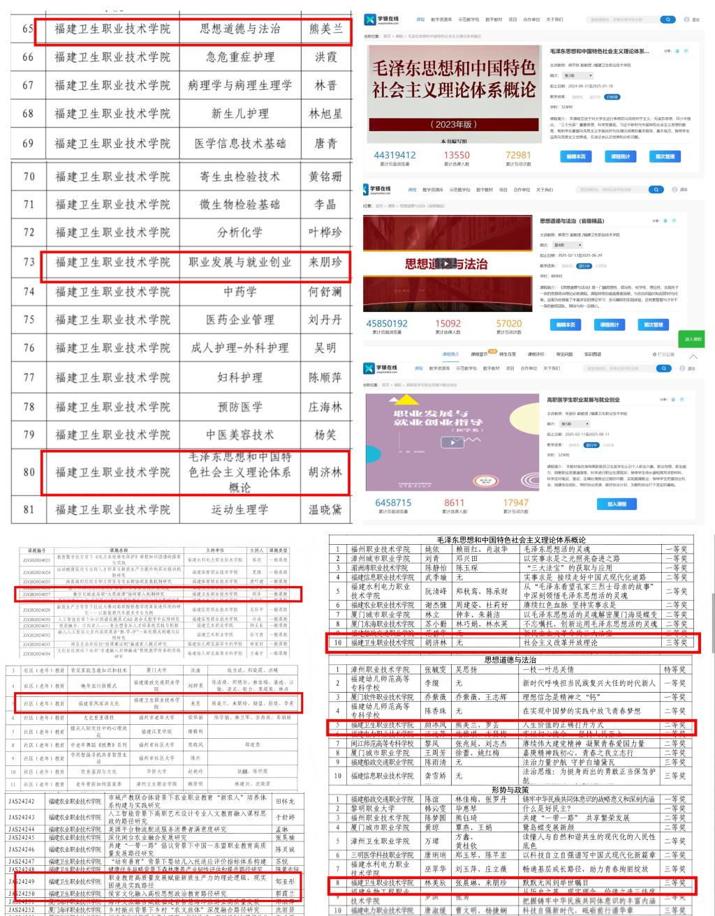传承薪火铸医魂,融合创新树品牌。新开设《红医薪火》特色选修课;打造“红医薪火”主题特色实践;推送《红色华佗:傅连暲》等13个红医系列微课;完成《建国前后红色闽医精神及当代价值研究》调研报告;联合古田会议纪念馆开展《红古田·红医颂·红故事》三红联引、“理论、情境、实践”三课堂联动系列“大思政课”活动,获新华网、东南网、福建省教育厅、福建教育微言、福建高校思政网、福建卫生健康新闻网、全国高职高专院校思想政治理论课建设联盟网等主流媒体报道。