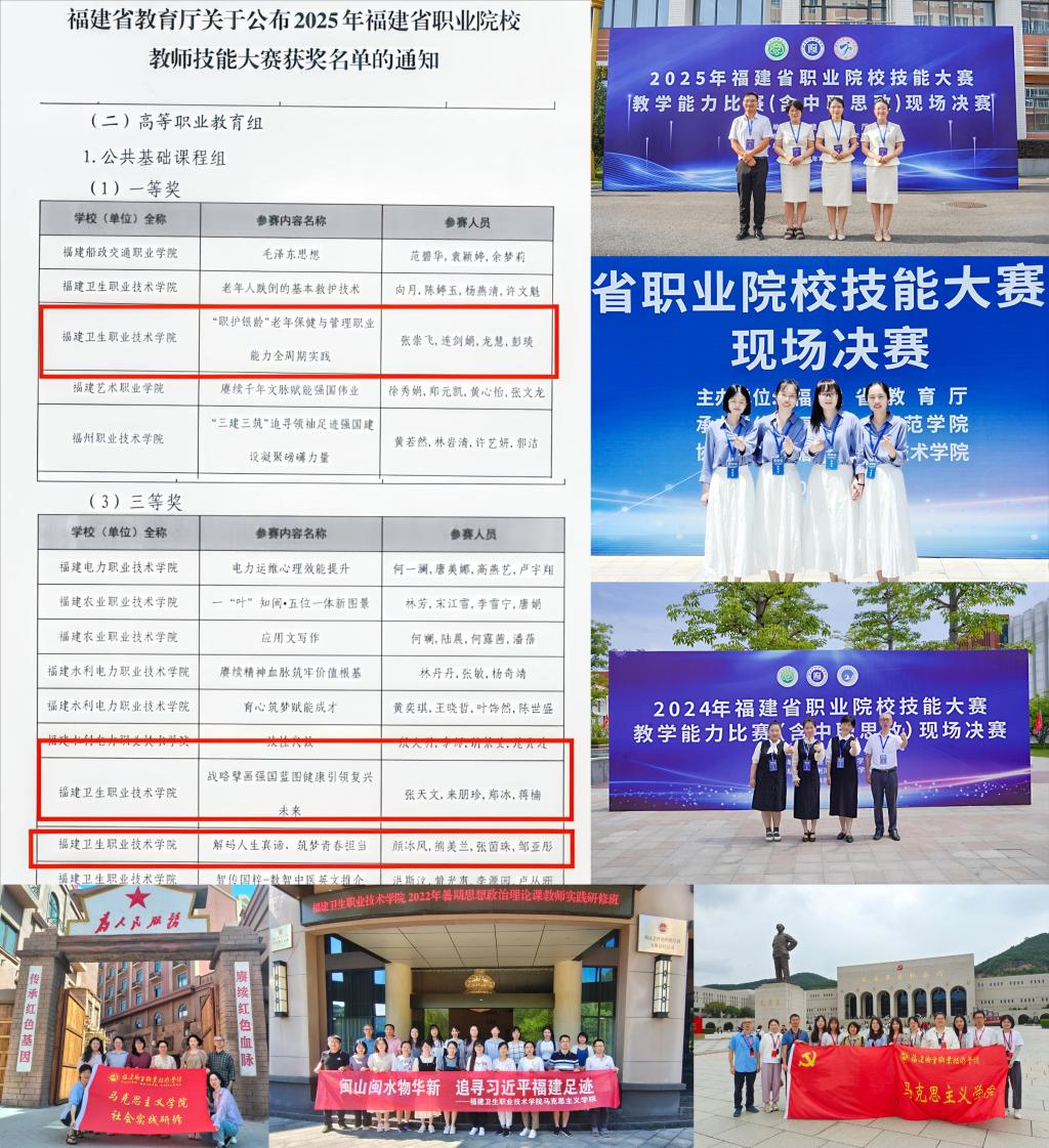 以赛促教强师能,锤炼本领砺良匠。积极组织教师参加教学比赛,62人次获省级及以上教学比赛奖项。其中,获福建省职业院校技能竞赛教师教学能力比赛一等奖、二等奖等共计33个奖次;1个团队被福建省教育厅推荐参加第四届全国高校思政课教学展示活动。