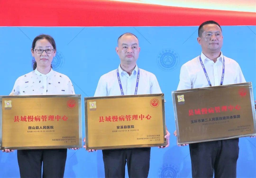 安溪县域慢病管理中心通过中国县域医院院长联盟认证,陈鑫坛代表医院接受授牌(图左二)