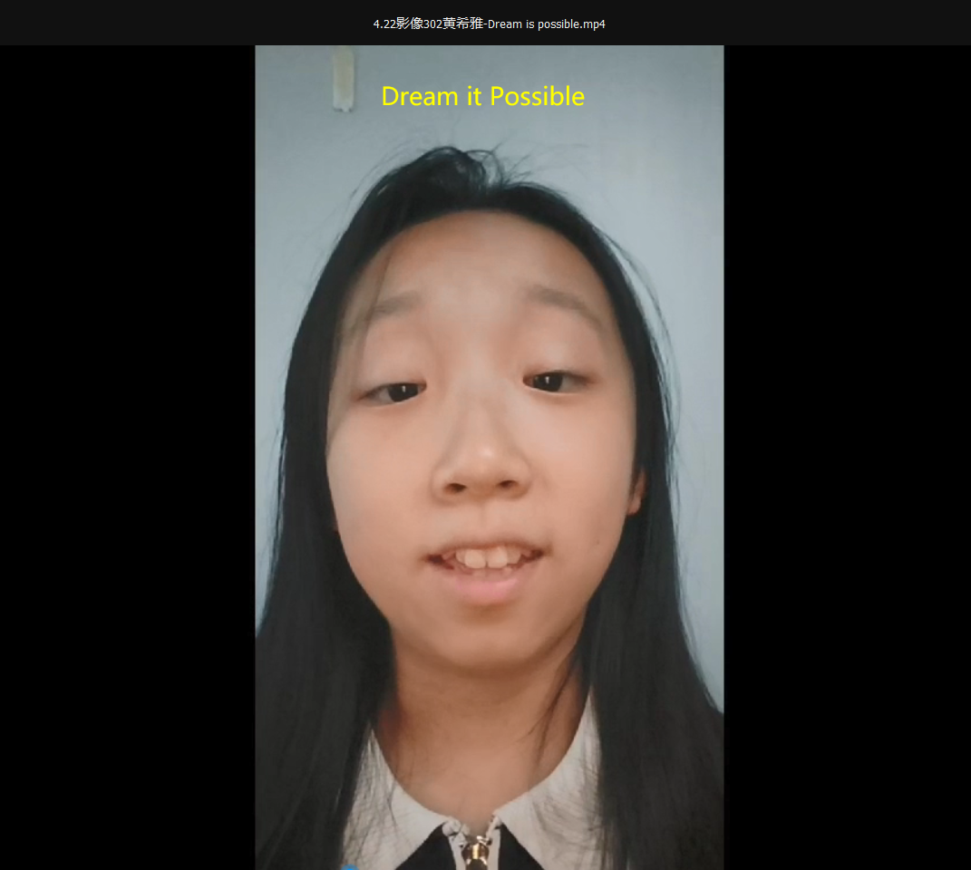 22影像302班黄希雅同学演唱歌曲《Dream it Possible》,表达了对实现中国梦的信心。