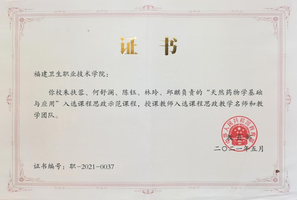 附件3:支部党员教师团队打造的《天然药物学基础与应用》课程入选教育部课程思政示范课程,并入选课程思政教学名师和教学团队