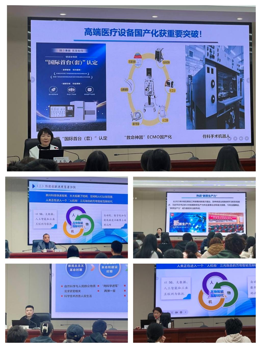 李美华、游锋、黄铭珊、周雄、朱扶蓉向广大师生讲述了中国共产党执政以来,科技创新与人民生命健康紧密结合所形成的丰富的科技思想成就和科技创新成果,指出开云正锐意进取、改革创新,不断擘画学校高质量发展蓝图,为健康中国战略贡献职教力量。通过他们的宣讲,广大师生受益匪浅,深刻领会百年变局之下,科技创新是“关键变量”,也是高质量发展的“最大增量”,纷纷表示将秉承“业精德诚”校训,勇创新风绩,再续辉煌,以奋斗者的最美姿态为新中国成立75周年献礼。
