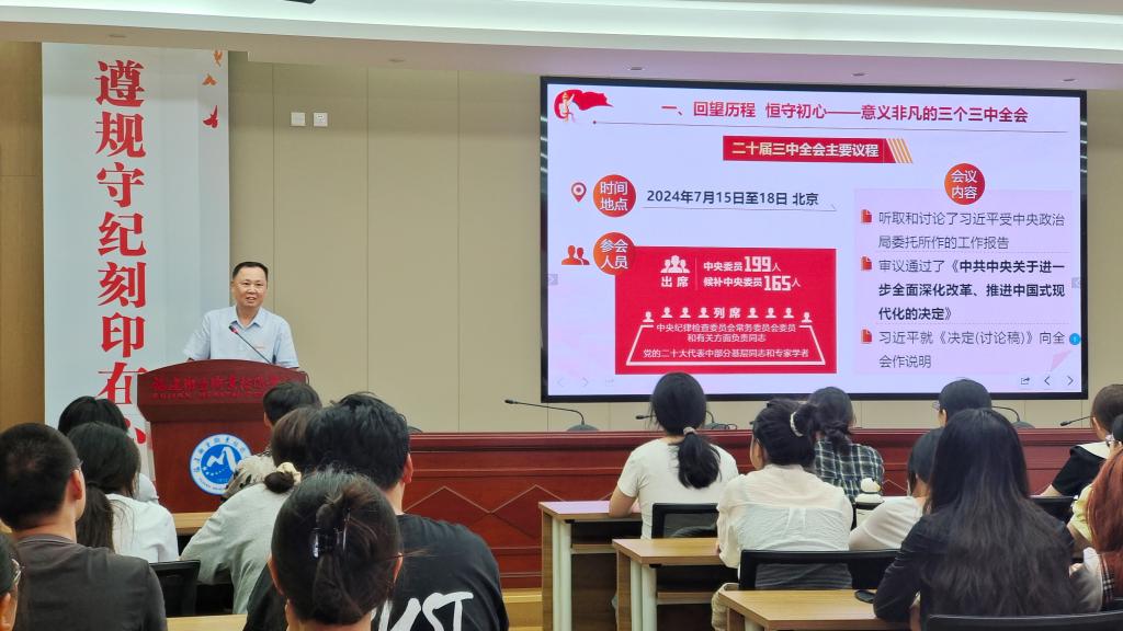 曾武祈聚焦“同心擘画改革新蓝图 携手奋进强国新征程”主题,围绕习近平总书记在党的二十届三中全会上的重要讲话和全会通过的《决定》,对全会的重大意义、《决定》提出的重大改革创新举措和习近平总书记关于全面深化改革的一系列新思想、新观点、新论断,进行了重点解读和细致梳理。他指出,全会精神是一座理论“富矿”,学习领会也必须持续发力、久久为功。闽卫院师生应坚持在深化内化转化上下功夫,学深悟透、以学促行,争做党的二十届三中全会精神的践行者,助推全会精神落地生根、开花结果。