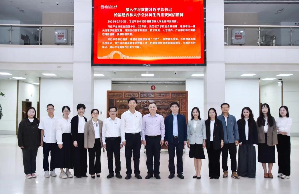 在福建农林大学仓山校区李常盛图书馆,调研团队共同参观了“习近平总书记关心指导福建农林大学建设发展”专题展厅与严复两岸农业科教馆。在宣传部有关同志的详细讲解下,进一步领悟重要回信精神的核心要义与时代价值,深刻感悟习近平总书记对教育、科技、人才工作的深远擘画。