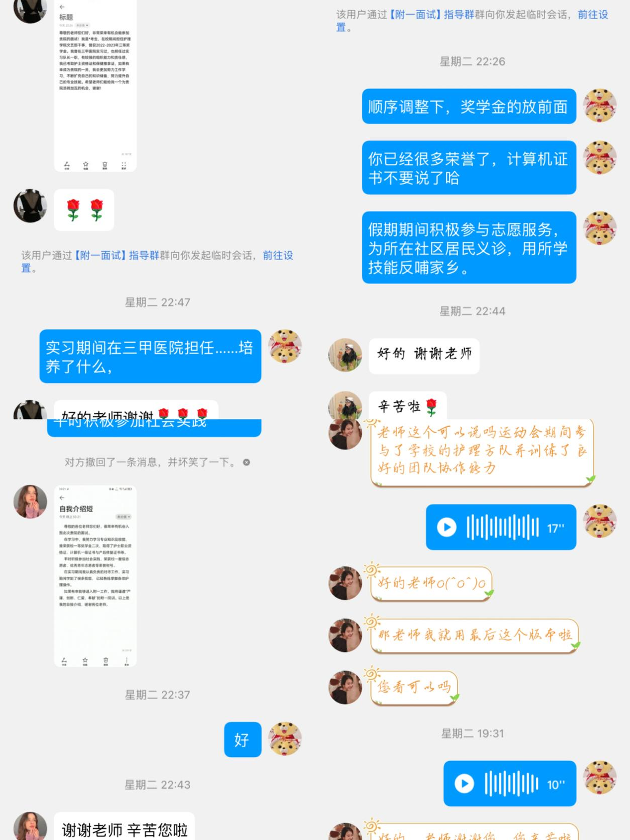 讲座结束,党员教师对进入面试的学生的自我介绍一一指导,打通就业服务“最后一公里”。