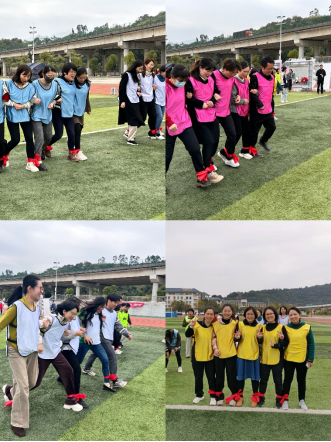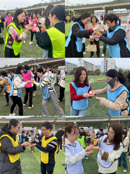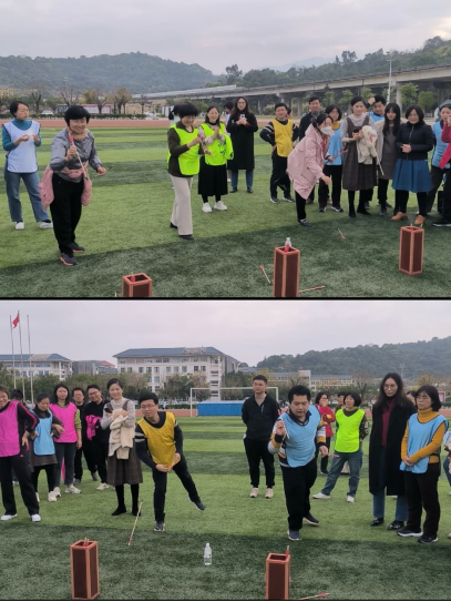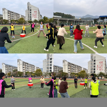 观看完家风教育微电影,大家移步田径场开展趣味运动会。比赛项目有筷子夹球、五人六足、足球进框、同心击鼓、趣味投壶五个项目,秉持增进部门间沟通交流的目的,不同部门、教研室的老师和辅导员们分成9支队伍,她们个个精神饱满、满腔热情地投入到趣味运动会中。现场加油声、呐喊声、喝彩声此起彼伏,不论输赢大家都欢声笑语,充分展示蓬勃向上的巾帼风采和拼搏向上、勇于争先的团队精神。