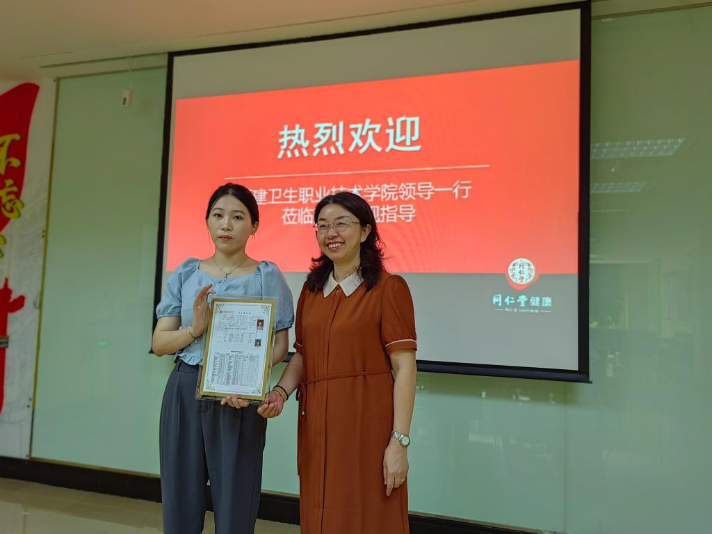 联系领导副校长黄铭珊在北京同仁堂访企拓岗时为校友颁发校友卡