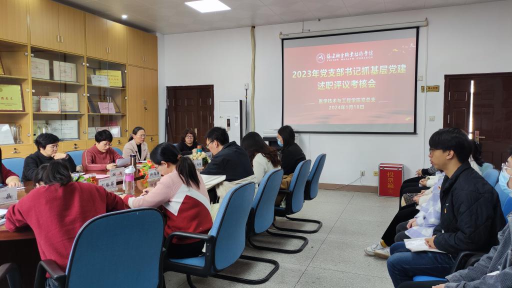 会上,医学技术与工程学院第一党支部、第二党支部、学生第一党支部、学生第二党支部书记聚焦学习贯彻习近平总书记关于党的建设的重要思想,贯彻落实新时代党的建设总要求、党的组织路线,坚持和加强党的全面领导,落实中央、省委关于基层党建工作部署要求,履行基层党建工作责任,依次现场述职,总结2023年度抓党建工作的成效、问题不足和改进措施。