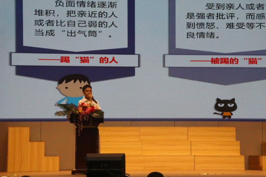 心理健康教育中心柏柯帆同学做了题为《拒绝踢猫效应,做情绪的主人》的知识讲座,柏柯帆同学通过讲解怎么拒绝“踢猫效应”与有趣的互动问答,让学生们知道如何减少或避免“踢猫效应”的发生并学会控制自我情绪,促进身心健康,让世界充满温暖与爱。