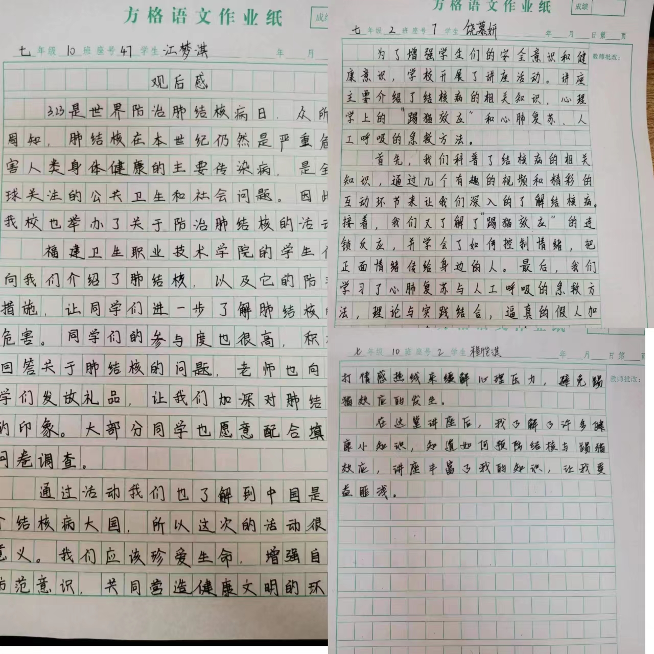 闽卫院结核病防治宣传志愿者林雅婷同学通过视频和问答的方式讲解了关于结核病防治知识。同学们也在互动问答中知晓了正确的结核病知识。有效提高了在校学生结核病知识知晓率。讲座后志愿者们还进行了结核病防治知识问卷调查,评价活动效果,为做好结核病宣教工作提供依据。