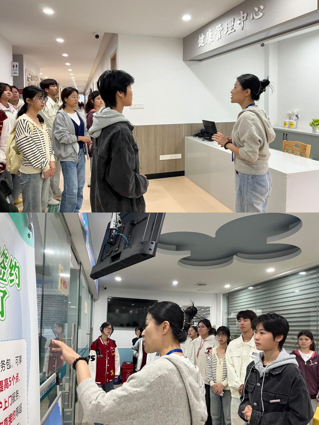 活动上,由魏兰芳老师带领闽卫院师生参观仓山区金山街道社区卫生服务中心的门诊楼与公卫楼,过程中魏兰芳老师热情洋溢地给闽卫院师生讲解该地区的设施、设备以及其用途。在“德医交融,实践育人”的理念指导下,我院不断深化人文关怀,作为医务工作者,我们深感责任重大,全会提出的新思想、新观点、新论断、新要求,对我国医疗卫生事业发展有着重要指导意义。