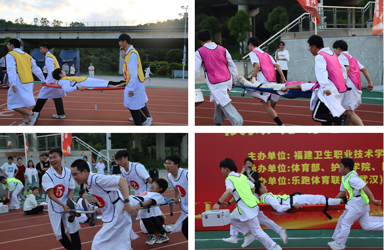 本次比赛是2023年职业教育活动周专业技能竞赛活动中的一项,通过担架抬真人、夹花生、心肺复苏等与职业实际场景相结合的形式,检验同学们职业体能储备、精细动作控制、专业技能掌握、联动联调配合等多个维度的能力,展现学校“医体融合”“体教融合”的发展理念和“崇健臻善”的校风精神。