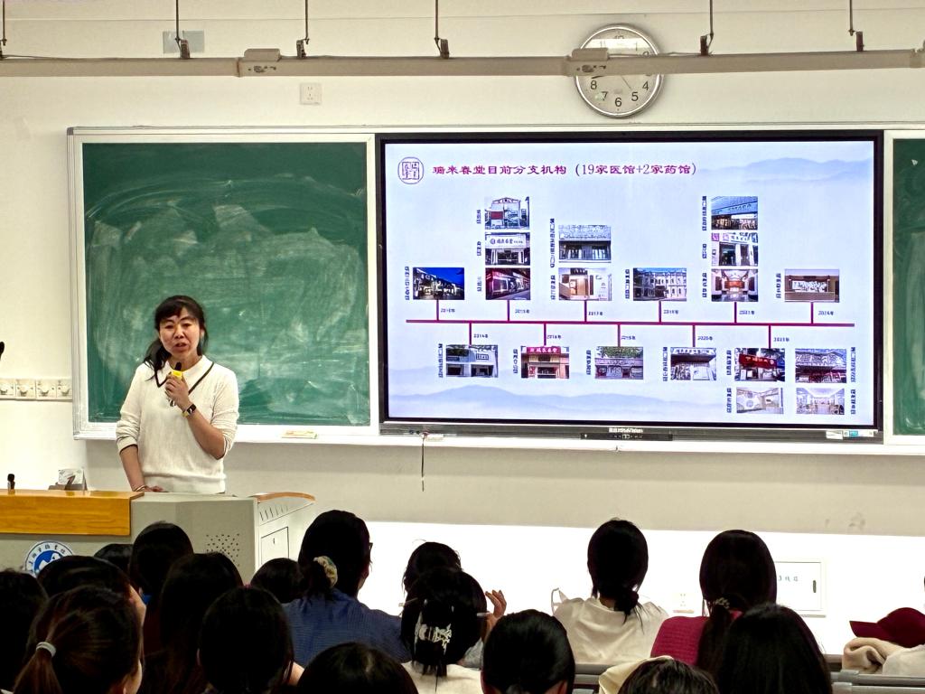 宣讲会伊始,瑞来春堂主讲人林文娟首先播放了企业宣传视频,以直观生动的画面,带领在场学生全方位感受企业的文化底蕴、服务理念与发展风貌。随后,林文娟系统讲解了瑞来春堂的发展历程、现有门店布局、核心业务板块以及标准化舒适的工作环境,重点聚焦企业在中医传统康复领域的核心优势,详细解读其特色业务——小儿生长发育的发展现状、临床应用场景及职场岗位需求。同时,结合针灸推拿、中医康复技术在常见病症调理、日常养生保健中的实操应用,让学生清晰知晓自身专业技能在中医传统康复领域的落地路径,进一步深化了对专业价值的认知与认同。