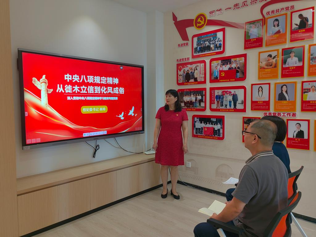 为扎实推进中央八项规定精神学习教育走深走实,提升党员干部的纪律规矩意识和作风建设水平,2025年6月18日,校党委委员、纪委书记林玲以《八项规定:从徙木立信到化风成俗》为题,为纪委办公室党支部全体党员带来了一场深刻且生动的专题党课。