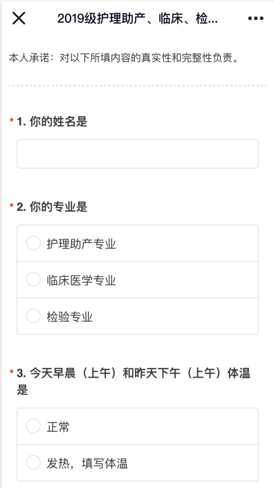 图2 学生填报每日健康情况登记表