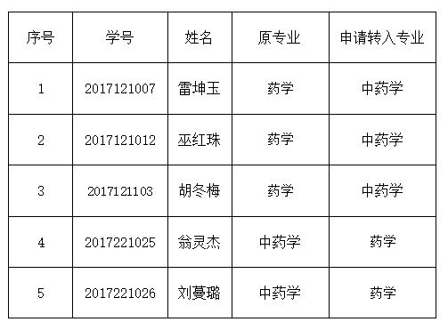 根据中国药科大学继续教育学院相关管理规定,2020级雷坤玉等5人因个人工作需要等原因,提出转专业申请,经班主任审核,我站研究审议,该5名学生符合转专业条件,同意转专业,并上报中国药科大学继续教育学院审批。 现将转专业名单予以公示,公示期12月21日至12月25日,如有异议,请以书面形式在公示期内向我站反馈。联系电话:0591-22869959
